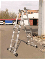 - 4-х коленные шарнирные лестницы серии А, складывающиеся в подмости и стремянку 1,2-5,4м;