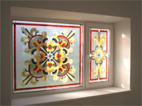 Уникальные характеристики витража особенно интересны именно в жилом интерьере. Им можно украсить окно, сохранив прозрачность, а можно сделать ярким пятном, выполняющим функции защиты от посторонних взоров. Благодаря своей светопропускной способности плоскость витража может служить прекрасным приемом зонирования, не нарушающим целостности восприятия пространства. Стилистически витраж может быть выполнен в соответствии с той тенденцией, которая ближе всего заказчику, учитывая особенности интерьера.