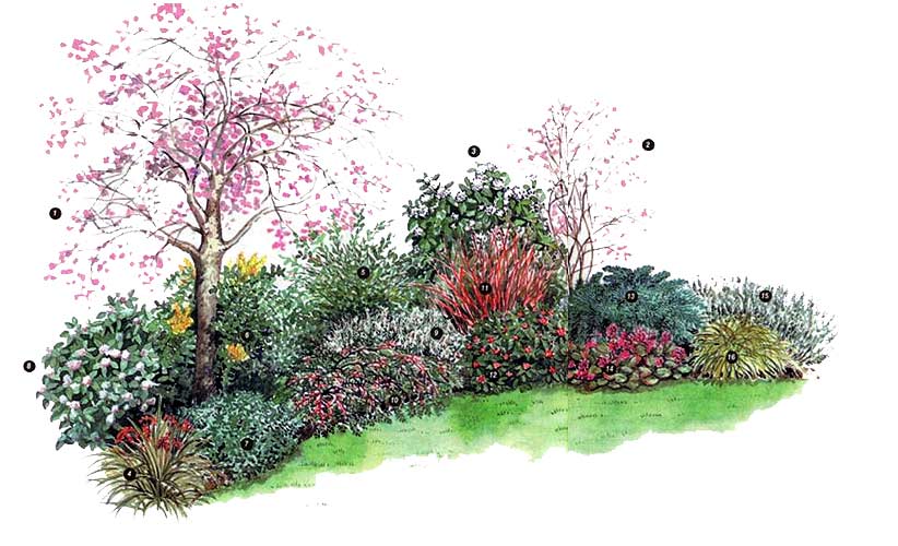 Растения для этого бордюра подобраны таким образом, чтобы он сохранял декоративность в межсезонье, когда другие части сада утрачивают привлекательность.