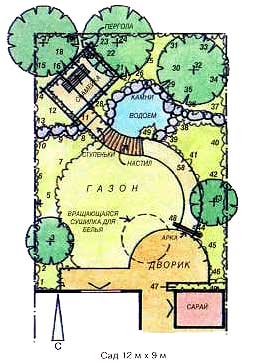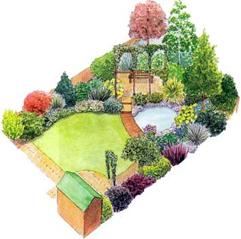 Значение листвы в убранстве сада часто недооценивают. Тем не менее можно создать потрясающий сад, в котором цветы играли бы второстепенную роль, а основной акцент был бы сделан на растения с разнообразной формой, размером или окраской листьев и стеблей. В представленном здесь проекте планировки небольшого сада использованы преимущественно растения с красивой листвой.
