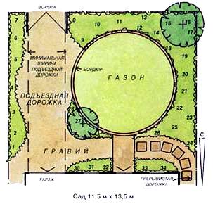 На представленном здесь небольшом участке, как и на многих других похожих участках, есть подъездной путь к гаражу, который располагается сбоку от дома. Из-за небольшой глубины сада въездные ворота могут располагаться только непосредственно напротив гаража. Вместо скучного прямого пути к гаражу ведет дорожка, покрытая гравием, который намеренно выходит за пределы необходимой для проезда машины минимальной площади, связывая между собой другие пешеходные проходы в саду.