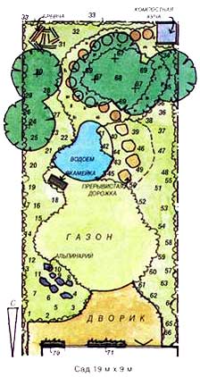 Площадь сада, кроме дворика, газона и водоема, занята растениями, которые обеспечивают убежище различной живности.