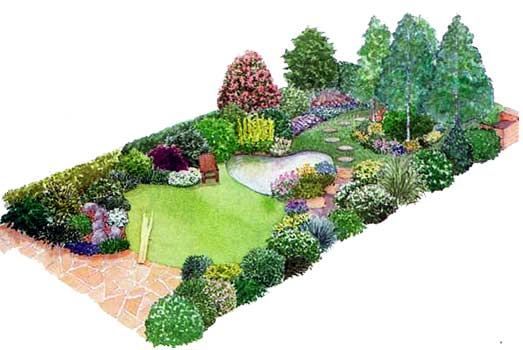 Сад, хозяева которого заботятся прежде всего о потребностях мелких диких животных, со временем может привлечь их и даже стать местом их постоянного обитания. На представленном вытянутом участке элементы традиционного способа обустройства декоративного сада присутствуют в виде маленького, неправильной формы дворика, скромного по площади газона и крошечного каменистого садика (альпинария); все остальное служит интересам диких животных.Сад густо засажен, и на всем его протяжении воспроизводятся различные среды обитания или разнохарактерные зоны, которые плавно перетекают одна в другую, так что по посадкам на границах участка в относительной безопасности может перемещаться дикая живность.