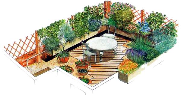 Маленький, ограниченный в весе сад: планировка, насаждения, элементы планировки