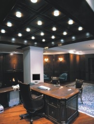 Горящий камин, драпировки на стенах, массивные шторы на окнах, шелковый ковер на полу. Сразу стало тепло, по-домашнему уютно, словом, как хотел заказчик. Ведь концепция была определена с самого начала: создать не офисный, а домашний кабинет, где посетитель — это гость, а сам кабинет не скрывает вкусов и пристрастий своего хозяина.