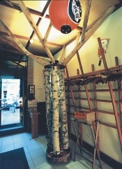 Как известно, интерьер создают детали. Здесь их множество. Красные бумажные фонарики и свиток (живопись на шелке), традиционные японские куклы и занавеси, всевозможные обереги и средства для привлечения удачи. Каждый предмет привезен из Японии и потому излучает притягательность подлинности. Кроме того, суши-бар изменяет свой облик в зависимости от времени года. Весной расцветает сакура — в букетах на столиках, в стеклянных подвесных кашпо и в миниатюрах на стенах. Осенью, то есть сейчас, "Нобу" привлекает икебаной из хризантем и кленовых листьев. У зимы и у лета тоже свое неповторимое лицо. О некоторых предметах интерьерного убранства "Нобу" стоит рассказать особо. Например, кукла Дарума. Есть такая поговорка: "В Японии много богов". Одним из самых популярных божеств является кукла Дарума. Происхождение ее таково: буддийский священник Бодхидхарма (по-японски Бодай Дарума) принес философию дзен-буддизма и медитацию в Китай, откуда потом эта религия попала в Японию. Медитирующие садятся, поджав ноги и прижав руки к туловищу — отсюда отсутствие у куклы рук и ног. Красный цвет куклы объясняется тем, что цвет одежды священника — красный. Согласно древней традиции, кукла Дарума способна приворожить удачу. Японцы отличаются большой практичностью и следуют специальным рекомендациям, как вероятнее всего добиться успеха при помощи куклы. Задумывая желание — например, сдать экзамен, победить на выборах, добиться процветания бизнеса или избежать несчастного случая, японцы закрашивают Дарума один глаз (кукла продается с незакрашенными глазами). Второй закрашивается тогда, когда желание исполняется. И еще одно важное свойство куклы Дарума: она никогда не падает. Этим она похожа на наши куклы-неваляшки.