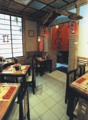 Девушки-официантки в шелковых кимоно также придают этому интерьеру ощущение национального колорита. Висящие на стенах иероглифы переводятся как “любовь”, “дружелюбие”, “мир”. Все эти мелочи, собранные в одном пространстве, создают ощущение покоя, уюта, теплой домашности.