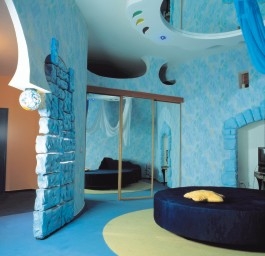 – Спальня у вас выполнена в синем цвете, кровать напоминает сцену, подиум. Почему, если не секрет? Как возникают такие решения?