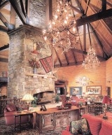 В 175-местном зале ресторана разнообразные пухлые диваны и кресла, обитые изысканными тканями и кожей, чередуются с плетеными креслами и стульями из древесины. Изготовленные на заказ "рогато-ветвистые" люстры завершают образ затерянной в дебрях сторожки охотника.