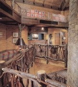 Дизайнеры помещений шестиэтажного жилого здания использовали преимущественно местные материалы. Центральный балкон поддерживают стволы деревьев. Стены из белой сосны гармонируют с дощатыми полами из сосны желтого оттенка и перилами из древесины лавра. Массивный каменный камин, тяжелые деревянные балки, меблировка, резная утварь, произведения искусства главного зала и жилых комнат нарочито грубы и выдержаны в "охотничьем" стиле.