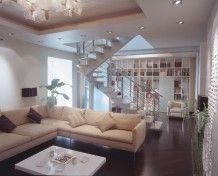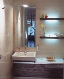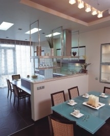 Интерьер не должен был быть пафосным — подчеркивать социальный статус обитателей и работать на внешний эффект. Хозяина интересовало другое: новое качество жизни в естественной для них с женой среде. Поэтому квартиру он хотел видеть легкой, просторной, нейтральной по стилю и в то же время обладающей индивидуальностью. Архитектору Владимиру Симоненко предстояло перевести все это на язык форм, цвета и фактур и вложить в замысел конкретный смысл. Хозяин дома не ставил перед архитектором никаких принципиальных ограничений. А кроме того, реконструируемая квартира была своеобразным "подарком" жене. То, что пространство получалось строгим, линейным, явно с "мужским" характером, хозяина не смущало. Именно такими архитектурными средствами, на его взгляд, можно было найти то, что дает ощущение пространства, которое усиливает колорит квартиры, выдержанный в объединяющих тонах мягкой и несколько "приглушенной" золотистой охры для создания большего визуального простора. В отношении материалов применен тот же принцип объединения: стекло, металл, дерево венге и мрамор различной технологической обработки. Освещение зон также решено с учетом зонирования. А применение светильников необычной конфигурации, усложненной цветом жженого сахара, продиктовано архитектурным рисунком потолка и модернистскими пристрастиями архитектора. В этом они с владельцем квартиры нашли общий язык.