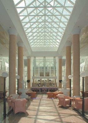 Сплошное зеркальное остекление придает силуэту гостиницы легкость и воздушность, растворяя его на фоне гавани. Новое сооружение на территории порта часто сравнивают с океанским лайнером. Мощные сваи, вбитые на глубину 32 метров — его надежные швартовы.