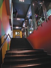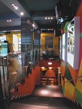 В кинотеатре "Украина" площадью около 1 200 м2 два зрительных зала — большой и малый, соответственно с двумя фойе, одно из которых — верхнее — служит местом проведения дискотек. Логично, что в процессе более чем трехлетней реконструкции кинотеатра "Украина" планировочные изменения не коснулись ядра помещения: кинотеатр и прежде находился в здании. Основные усилия архитекторов и дизайнеров были направлены на обеспечение соответствия объекта понятию современного культурно-развлекательного центра молодежного и семейного отдыха. В "Украину", расположенную в уютном квартальчике неподалеку от Крещатика, посетителей приводит не только желание посмотреть новую ленту: здесь можно потанцевать или провести остаток вечера за ужином.