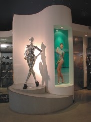 Одним из принципов творческой корректности в сфере дизайна и архитектуры является создание среды, позволяющей сделать товар главным действующим лицом интерьерных "событий". Этот сине-бело-металлический магазин — образец именно такого подхода: и блестящие манекены в витринах, и кроссовок Шакила ОНила, на который ходят поглазеть любопытные подростки-баскетболисты и взрослые поклонники игры, еще долго будут привлекать внимание к полочкам и вешалкам, заполненным одеждой и аксессуарами для занятий спортом.