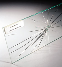 Но самое надежное и безопасное стекло все-таки триплекс. Технология его изготовления примерно следующая. Между двумя листами стекла укладывают полимерную пленку и помещают в автоклав. Пленка сделана из эластичного материала - бутафоля (для самых дотошных читателей приведу название полностью - поливинилбутироль пластифицированный). При температуре выше 100 градусов пленка полимеризуется и, как клей, соединяет два листа. Как выразился Сан Саныч, "прочность триплекса на удар в 12 раз превышает прочность обычного листового стекла". Если некто попытается разбить триплекс, бедняге придется нелегко. Но в случае чего осколки не брызнут во все стороны: они повиснут на промежуточной пленке, не причинив вреда. Если пленка цветная, то триплекс получается цветной. Кроме того, такая пленка поглощает тепло или свет. Смотрится такое многослойное стекло как монолит. Еще триплекс поглощает звук. Подсчитано, что в крупных городах нам по ушам бьет не менее 72 разновидностей уличного шума, врывающегося в окна.