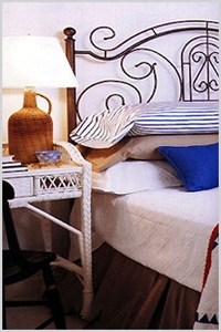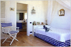 В средиземноморском интерьере использование текстиля имеет более утилитарное, нежели эстетическое назначение. Ткани натурального происхождения лен, хлопок используются на подушках, покрывалах, матрацах. Занавески большая редкость, так как исторически используются наружные ставни или маркизы. В нашем случае можно использовать жалюзи из натуральных материалов (рогожка, бамбук, дерево) или римские шторы из натуральных тканей. Орнаментальностью этот стиль не изобилует. Все очень спокойно и функционально. Кружево кустарное, вязанное крючком или вышито тамбурным швом. Чисто белое для "греческого" варианта, кремовое или слоновой кости - для "итальянского". Кружево обычно используют в качестве наволочек и накидок на подушки, скатерти или дорожки на буфеты и комоды. Помните, основная идея стиля - доступность и утилитарность, поэтому не должно быть нарочитой роскоши и шика. Что касается аксессуаров, то они тоже подчиняются вышеизложенному принципу. На открытых полках расположите - расписанную в ручную, керамику с растительной тематикой. В той же колористической гамме, которая присуща вашему интерьеру. Декорирование морскими раковинами, ракушками, гальками создаст ощущение близости моря. Большое количество растительности (желательно средиземноморского региона) внесет ощущение изобильности пышного сада и тем самым создаст нужное настроение.