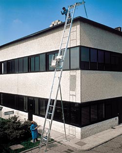 Я поразилась: как, оказывается, много на свете профессий, где без стремянки буквально нет никакой жизни. Прежде всего это, конечно, строители. О применении стремянок в строительстве можно было бы написать целую книгу. И, между прочим, такая книга есть: в виде подробнейшего каталога крупнейшей фирмы-производителя подъёмной техники "Царгес" (Zarges, Германия). Увлекательное чтение, доложу я вам. Мне показали десятки видов всевозможных лестниц и стремянок, я лицезрела всевозможные строительные вышки и помосты, строительные леса, подъёмники с электродвигателем и лебёдкой... Выбор богатейший, покупай - и лазай не хочу.
