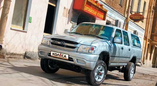Здрасте-поехали. Через заправку – народным 92-м бензином. Хотелось бы, конечно, на таком аппарате видеть дизель, хоть бы и без "турбы". Но здешний силовой агрегат неплохо имитирует как раз-таки дизельный мотор со всеми его особенностями. Тут и великолепная тяга на низах, благодаря чему пикап легко трогается со второй передачи; и полное нежелание крутиться в принципе – набор оборотов происходит вяло. К тому же выше двух с небольшим тысяч по тахометру звук мотора превращается в натужный вой – в точности как на допотопном армейском "уазике". В оленьей среде так голосить не принято. Зато принято скакать козлом – везде и всюду. Пляска идет такая, что, того и гляди, поставишь головой вмятину на крыше. А если еще и пассажир рядом сидит… Что ж, весьма вероятно, в один прекрасный момент Deer таки обретет подобающие ему рога – одновременно с шишками на головах обитателей салона. Но качество покрытия перестает иметь значение напрочь: там где все нормальные автомобили ездят на цыпочках, пикап проскакивает без снижения скорости. Жесткость подвески на незагруженной машине такова, что кажется, будто автомобиль подпрыгивает даже на ровном асфальте! Весело, ничего не скажешь… Зато грузоподъемность – 850 кэгэ!