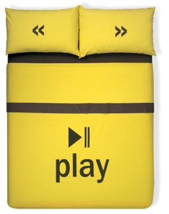 Видимо, памятуя об этом, дизайнеры испанской компании Revert «вдохнули жизнь» в обычные постельные принадлежности, а именно в свою новую коллекцию под названием Words collection. Идея в том, что постель представляет собой не просто ткань определённой расцветки, а целую многозначительную композицию. Например, на пододеяльнике изображена всем знакомая кнопка «play», а на наволочках — символы перемотки «назад» и «вперёд». О чём это нам говорит? Может быть, о том, что «наша жизнь — игра», а, может быть, о приятных моментах в жизни, которые хочется перемотать назад? В любом случае, такой рисунок говорит о многом. Надо только прислушаться!