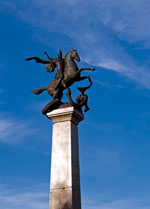С конца XV в. Нижний Новгород имеет решающее значение в борьбе за великий речной путь. В этот период в городе возводится каменный Кремль, ставший выдающимся образцом русского зодчества. Летом 1509 г. в город прибыл зодчий-иноземец Петр Фрязин, а "сентября в 1 день заложиша Новаград Нижний и делаша стену каменную и стрельницу Дмитровскую". Кремль получил тринадцать башен в общем периметре крепостных стен и четырнадцатую - отводную стрельницу, соединенную с Дмитриевскими воротами каменным арочным мостом. Часть кремлевских сооружений не сохранились, часть полуразрушена. Но он по сей день впечатляет своей красотой и мощью.