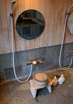 Внутренние двери, естественно, тоже раздвижные, японцы называют их сёдзи - это панели из рисовой бумаги, разделенные деревянными планками-решетками. Рисовая бумага хороша тем, что пропускает свет и впитывает влагу. Последнее свойство нашим домам ни к чему, поэтому часто бумагу заменяют матовым стеклом. Благодаря визуальной и функциональной легкости фусума и сёдзи внутренние границы японского дома весьма условны и всегда подвижны. А пространство легко видоизменяется.