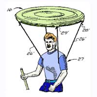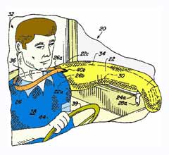 Следующий "лот", кажется, весьма и весьма полезен и, опять же, летом: эдакая штуковина, которая поднимет ваши ноги во время загара для его же (загара) равномерного распределения по поверхности тела. Дёшево и сурово. Отдаёт, правда, моргом. Ну и пусть — всё равно смешно. Патент (№4,685,702) выдан в 1986 году. Называется, как нетрудно догадаться, Foot Elevator. Иллюстрация — здесь.