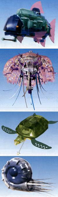 Самый скучный, похоже, улитка NAUTILUS — просто болтается под водой. Что страшнее, "черепаха" или "рыба"? — Пожалуй, "рыба". Она и на рыбу-то похожа не очень, но у этой страшноватой пары есть преимущество — штырь, расположенный спереди, позволяет им обходить препятствия, естественно, предварительно на него этим штырём наткнувшись.