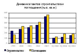 Предложение. В течение всего 2004 года объем строительства офисных помещений постоянно растет. Более 140 тыс. кв.м офисных помещений высокого качества было выведено на рынок в 3 квартале этого года. Значительная доля вышедших на рынок новых площадей класса "A" и "B" была продана или арендована ещё на этапе строительства.