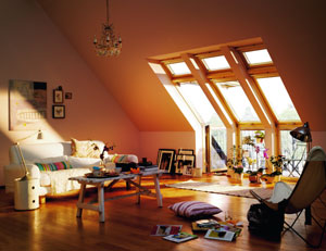Многие мансарды страдают от недостатка света. Согласно СниП, для нормального освещения площадь остекления должна быть не менее 10 % от площади освещаемого помещения. Но, безусловно, можно предусмотреть и больше. Мансардные окна дают на 30-40 % больше света, чем вертикальные. Для оптимального освещения мансардного помещения необходимо правильно рассчитать количество и размер мансардных окон, их расположение в кровле, а также высоту их установки. Для гостиных, студий и детских комнат лучше предусмотреть больше света. Использование окон больших размеров и комбинаций окон помогает также создать эффектные интерьеры.