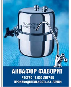 Если вы хотите, чтобы кухня выглядела современно, вам не обойтись без встроенного фильтра. Когда фильтр встроен, на раковине появляется еще один кран – только для чистой воды. Ресурс такого фильтра – до 12 000 л, скорость фильтрации – 2,5 л/мин. Встраиваемых моделей у АКВАФОРА несколько, но самая «солидная» - «АКВАФОР Фаворит»: металлический корпус прослужит долго, а картридж нужно менять раз в полтора года.