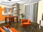 После того, как перед Вами фактически положен чистый лист (свободное пространство, которое надо разделить на участки так, чтобы снова не загрузить его “под завязку”), нужно продумать, что Вы хотите, чтобы там было. Если кухня, то ей можно отвести один угол комнаты, отделив от остальной части барной стойкой. Телевизор в таком помещении удобно повесить на стену так, чтобы он был виден и тому, кто готовит, и тому, кто сидит и целенаправленно его смотрит. Максимально далеко от источника шума надо поместить детей. Кроме того, их уголок лучше отделить от остальной комнаты. Сделать это можно при помощи шкафа-купе, который всё равно надо куда-то ставить, либо же при помощи стеллажа, на котором Вы сможете расположить книги и игрушки ребёнка. Так же стоит рассмотреть вопрос о шкафах со встроенной постелью. Тогда, просто подняв её утром и убрав внутрь отведённого ей отделения, Вы освободите очень много места. Грамотная перепланировка позволит сделать всё это и не только.