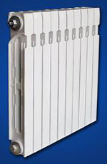 Еще сложнее в изготовлении биметаллический радиатор. Он имеет стальную внутреннюю часть, которую дополнительно защищают от коррозии, и внешнее алюминиевое оребрение, изготовленное методом отливки или прессовки.