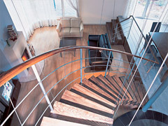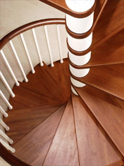 Как известно, бесконечность имеет свойство завораживать. Именно поэтому спиралевидные узоры и аксессуары столь популярны в дизайне всех эпох. Идеально подходит спиралевидная конфигурация и для проектирования лестниц. Все мы знаем, что эти конструкции принято называть винтовыми, но лишь тот, кто решится на установку такой лестницы дома, поймет, как сильно она способна преобразить интерьер. С конструктивной точки зрения винтовая лестница представляет собой центральный столб (его также нередко называют обсадной трубой), к которому крепятся ступени. В результате получается винт – профиль, образующийся в результате перекрытия радиальных ступеней, консольно закрепленных на оси. Впрочем, существует несколько типов винтовых лестниц. Бывает, например, что ступени просто заделываются в криволинейную (вогнутую) стену. Клинообразные ступени также можно заставить широким концом опираться на окружающие стены, а узким – на обсадную трубу. Вы, наверно, уже и сами догадались, что из всех видов конструкций только первая может быть установлена посреди комнаты, всем остальным для устойчивости необходимы стены. Шаг ступеней винтовой лестницы (т.е. высота подъема одной ступени) больше, чем у традиционных маршевых лестниц – около 180 мм. Поэтому винтовые лестницы менее удобны в использовании и зачастую довольно травмоопасны. По глубине ступени «винта» лестницы тоже нормируются. В той зоне, где наступает нога, ширина ступени должна составлять 25-30 см, по краю – 30-35 см. Такая глубина устанавливается неслучайно: избежать травм можно только в том случае, если ступня поднимающегося или спускающегося человека встает на ступень полностью, не свисая за край. Что же касается ширины самой лестницы, то, конечно, проект винтовой красавицы во многом зависит от размеров проема в междуэтажном перекрытии. Однако специалисты предупреждают: если лестница будет использоваться как основная, ее ширина не должна быть меньше 80 см. Мы не случайно сделали оговорку про предназначение лестницы. Обычно «винт», с его довольно крутым подъемом, используется как техническая или вспомогательная лестница, которая ведет в помещения, редко используемые в течение дня, например, на мансарды или цокольный этаж. В качестве основных лестниц винтовые конструкции применяются, в основном, в помещениях, ограниченных по метражу. Прежде чем приступить к проектированию винтовой лестницы или приобретению готовой конструкции, вам необходимо определиться с направлением движения. Как правило, оно диктуется планировкой помещения и возможностью создания максимальных удобств для подхода к маршу. Иногда направление движения выбирают согласно сложившимся привычкам: особо суеверные граждане предпочитают никогда не начинать подъем с левой ноги. Традиционными материалами для изготовления винтовых лестниц считаются дерево, архитектурное стекло, металл, керамика или натуральный камень. В последнем случае речь идет только об облицовке ступеней, иначе винтовая конструкция будет слишком тяжелой. Кстати, прежде чем установить у себя в квартире или доме винтовую лестницу, обязательно уточните, в каком состоянии находятся перекрытия. В ветхих и деревянных домах «винты» зачастую нежелательны, поскольку имеют маленькую площадь соприкосновения с полом и тем самым создают слишком большую нагр