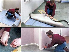 По периметру помещения прибивают грипперные рейки. В сложных местах правильно закрепить ковролин могут только специалисты.Еще один исключительно важный момент грамотного настила - это подложка.Кстати покупатели у нас почему-то выбирая ковровое покрытие, забывают про нее Конечно, каждый вправе решать, покупать ее или нет. Но специалисты объяснили, что главное назначение подложки - увеличение срока службы коврового покрытия (как минимум в два раза). Без нее оно быстрее перетирается между жестким полом и жесткой подошвой. В случае, когда покрытие настелено на подложку, часть удара при ходьбе она берет на себя, выступая в роли амортизатора. Другое назначение подложки - увеличение ощущения комфортности и мягкости. Купив тонкий ковер и настелив его на подложку, можно достигнуть эффекта толстого ворсового ковра. И, между прочим, сэкономить при этом энную сумму.