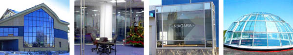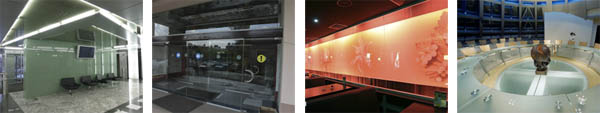 Закалённое стекло не только надёжно и безопасно, но ещё очень эстетично. Благодаря разнообразию технологий по обработки стекла возрастают его оформительские возможности. Наиболее полно они раскрываются в создании витражных композиций, панно, витрин, входных групп и перегородок. То есть там, где необходимо подчеркнуть фирменный стиль, создать оригинальную композицию или вписаться в общую архитектуру здания. Гласс-Дизайн - одна из первых фирм в регионе, чьей основной специализацией стало использование закалённого стекла в строительных конструкциях. Строительная компания Гласс-Дизайн более пяти лет успешно работает на рынке Урала и Сибири. С ростом компании естественным образом расширился круг интересов, были образованы новые направления деятельности. Сейчас Гласс-Дизайн выполнит комплекс работ связанных как со строительством фасада здания (витражи, вентилируемые фасады, купола, зимние сады), так и с организацией внутреннего пространства офиса или торгового комплекса (перегородки, лестницы и лестничные ограждения, полы, входные группы и т.д.). Вся деятельность направлена на то, чтобы наиболее полно использовать накопленный потенциал. Для создания технически сложных эксклюзивных проектов был образован сильный конструкторский отдел. Парк станков и более 40-ка опытных специалистов-монтажников в штате компании позволяют выполнять заказы любой сложности в самые сжатые сроки.