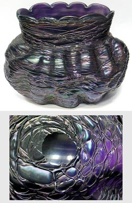 Льдистое стекло (кракелированное, или кракле) Его получают путем погружения заготовки в холодную воду, отчего на поверхности образуется сеть беспорядочных трещин (кракелюр). Затем стекло заново нагревают и выдувают.