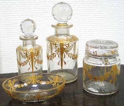 Золочение Это одно из наиболее популярных средств декорирования посуды. Тонкая фольга может вплавляться между слоями стекла (межстекольное золочение, популярное в Богемии) или же покрывать его снаружи. Возможна также роспись поверхности окисью золота (эта дешевле, чем фольга, поэтому пользуется особой популярностью).