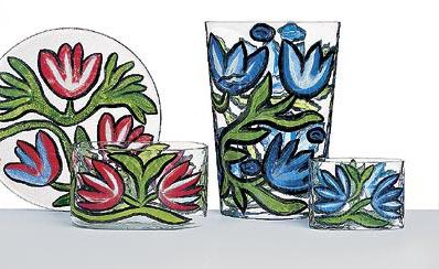 Роспись Самый распространенный вид наружной отделки стеклянной посуды - роспись. Ее можно производить холодным способом (непрозрачные краски наносятся на поверхность без последующего обжига) и эмалью с обжигом (эмаль из цветного стекла при этом образует на поверхности изделия прозрачный слой, контрастирующий с основным фоном).