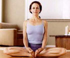 Одна из поз, которую ребенок может реально повторить, – это Бадда Конасана (связанный угол). Сядьте, соединив стопы вместе, согнув колени и разведя их в стороны насколько возможно. Посадите ребенка к себе на колено в той же позиции. Мягко наклоняйтесь вперед вместе.