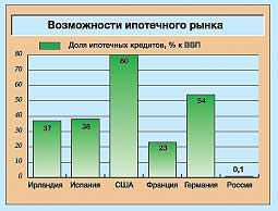 Впрочем, пока еще нельзя назвать ипотеку массовой. Ведь сегодня с ее помощью приобретается всего 1,5% жилья. Да и сделки эти заключаются преимущественно в столице и в нескольких крупных городах страны. Для большинства россиян ипотека пока недоступна. Главное, что тормозит ее развитие, – низкая платежеспособность россиян. Средняя зарплата в стране сегодня порядка 5,5 тыс. рублей. «Ипотеку тормозят достаточно высокие цены на жилье и несоответствие их текущему доходу потребителя, а также отсутствие долгосрочных сравнительно дешевых денежных ресурсов, которые банки могли бы привлечь», – считает заместитель председателя правления АКБ «СОЮЗ» Екатерина Демыгина. «В течение прошлого года Госдума и Совет Федерации приложили немало усилий для создания правового поля, обеспечивающего функционирование рынка ипотеки, – говорит начальник отдела ипотечного кредитования КБ «Московский Капитал» Игорь Драгой. – Однако, на мой взгляд, основная задача, которая стоит перед государством (сдерживание инфляции), еще не решена – рост цен на жилье опережает рост доходов населения».