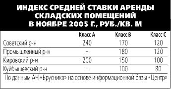 Строительство складов ведут не только логистические компании, но и ритейлоры, выходящие на новый для себя рынок. Директор сети “Самара-продукт” Борис Храпатый сообщил, что компания заканчивает строительство собственного терминала класса А (с подъездными путями, в том числе железнодорожными, эстакадами, автономной котельной и т. д.); комплекс будет открыт весной 2006 г. По его словам, компания планирует затратить на проект $9-10 млн. Комплекс расположится во вновь построенном здании на Заводском шоссе (на промышленной окраине Самары), будет включать в себя складские (17 000 кв. м) и офисные помещения (3500 кв. м). Большую часть склада компания предполагает сдавать в аренду по $8-10 за 1 кв. м складских площадей и $13-15 за 1 кв. м офисов. Храпатый уверен, что комплекс будет востребован, поскольку “в Самаре наблюдается дефицит площадей такого класса”.