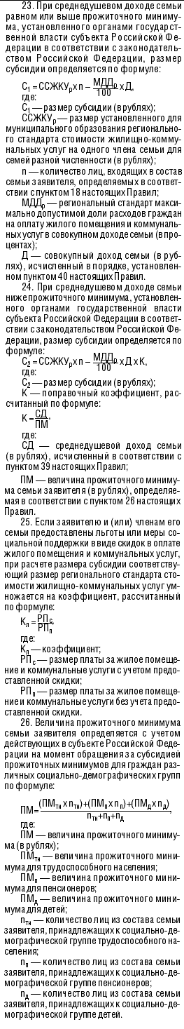 Имея под рукой публикуемые сегодня правила, каждая семья может самостоятельно рассчитать, какую сумму субсидий ей должны предоставить. И проверить, не ошиблись ли в расчетах представители местных жилищных организаций. Надо учесть, что рассчитываются размеры субсидий для различных категорий граждан по разным формулам (скажем, у кого-то среднедушевой доход выше прожиточного минимума, у кого-то ниже, кто-то имеет льготы и т.д.).