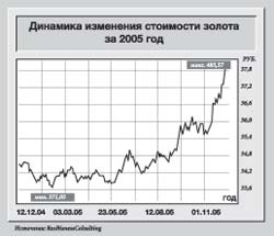 Можно сказать, что повезло и тем, кого в качестве инвестиционного инструмента привлекло золото. В середине декабря уходящего года впервые с апреля 1981 года цена на него превысила отметку 530 долларов за унцию, а официальная цена фьючерса на февраль составила 530,2 доллара за унцию. По словам аналитика ИК «Финам» Натальи Кочешковой, золото в 2005 году вообще достигло исторических 22-летних максимумов, превысив 500 долл. за унцию на ожиданиях увеличения спроса со стороны центральных банков. «Рост цен на него можно объяснить тем, что в середине ноября ЦБ РФ заявил, что может увеличить долю золота в золотовалютных резервах с 5 до 10%. Центробанки ЮАР и Аргентины также сообщили о возможном увеличении доли золота в резервах. Кроме того, интерес к золоту был обусловлен желанием инвесторов диверсифицировать свои портфели, защититься от инфляции. Сыграл свою роль и растущий спрос со стороны ювелирной промышленности», – отметил эксперт. В результате среднегодовая стоимость золота в 2005 году составила 440 долл. за унцию. По прогнозу компании «Финам», в следующем году она составит 475 долл. за унцию, а в долгосрочной перспективе – 350–400 долл.