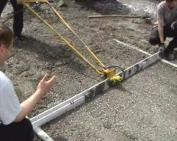 Для чистового выравнивания с одновременным виброуплотнением полистиролбетона низких плотностей применяются облегченные виброрейки (виброполутерки), оснащенные высокочастотными вибраторами.
