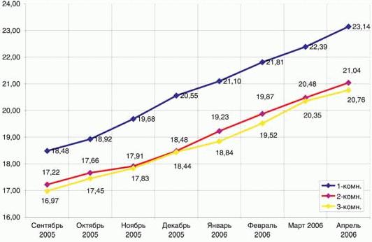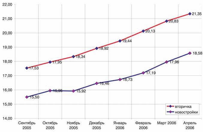 Индекс вторичного рынка журнала «Недвижимость» на 24.04.2006 года — 21 350 (+2,5%)
