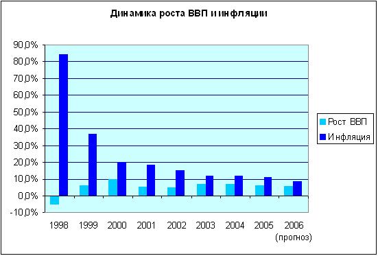 По предварительным оценкам Росстата, рост ВВП в 2005 году составил 6,4%, что соответствует прогнозам Минэкономразвития. Тем не менее, по сравнению с 2004 годом произошло некоторое снижение темпов роста ВВП – тогда этот показатель достиг 7,2%.
