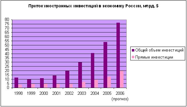 Объем прямых иностранных инвестиций в Россию составит, по оценкам Минэкономразвития, $17-22 млрд. Таким образом, ожидается развитие тенденции ежегодного роста, зафиксированной в предыдущие годы.