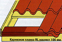 Карнизная планка RL должна крепиться прежде, чем кровельные листы. Для на-хлеста достаточно 100 мм. Карнизную планку крепят оцинкованными гвоздями с расстоянием 300 мм. Что бы обрезать лист, используют ножницы по жести.