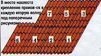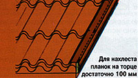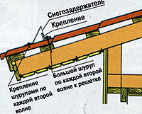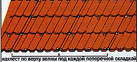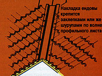 В местах нахлеста листы устанавливаются по поперечному рисунку (для нахлеста достаточно 250 мм) и крепятся как и указано выше. И все-таки каждый такой случай решается конкретно. В местах нахлеста крепление производится в каждую вторую волну под поперечным рисунком.