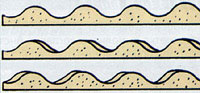 Замок волны каждого кровельного листа должен быть накрыт следующим листом. У профиля "Монтеррей" замок волны расположен с левого края. В то же время монтаж кровельных листов можно начинать как с левого, так и с правого торцов. Если монтаж начат с левого края, то каждый следующий лист устанавливается под последнюю волну предыдущего листа. Этот прием облегчает работу при монтаже.